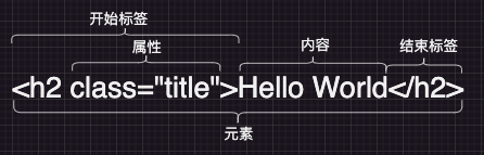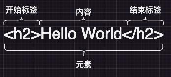 - 包含元素的名称(本例为 h2),被左、右尖括号所包围