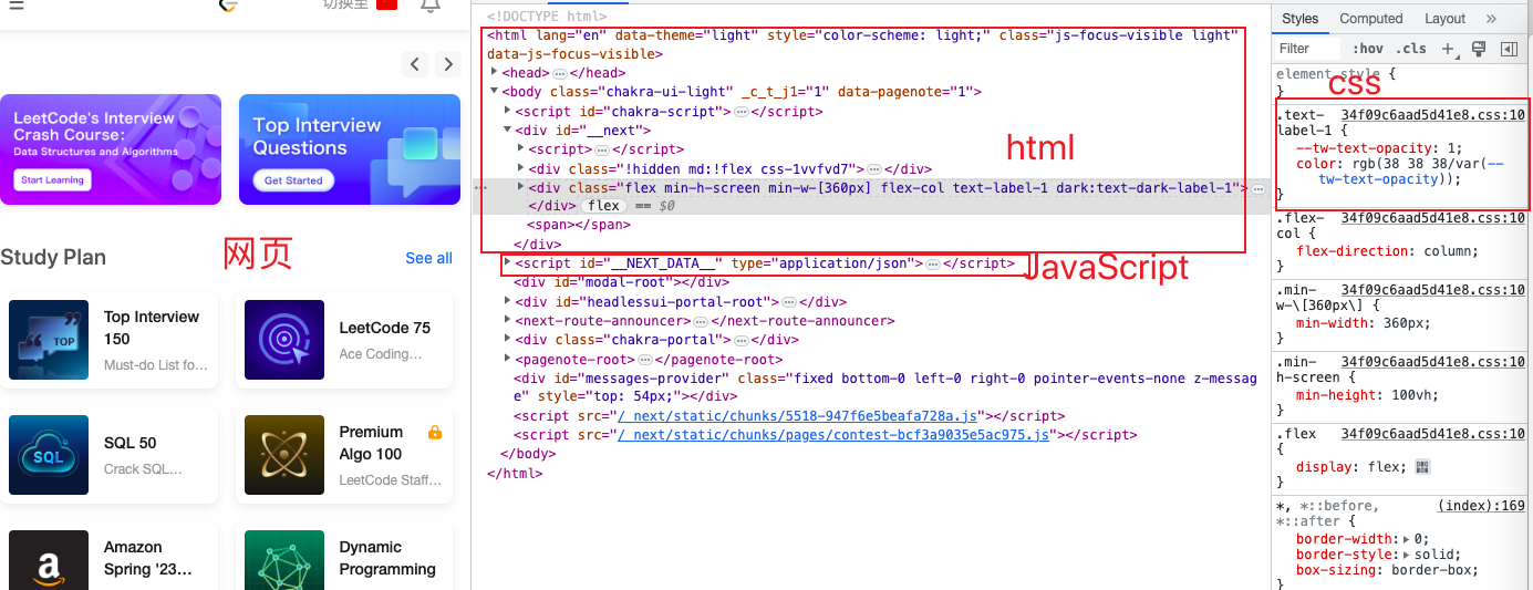 - 网页的组成部分:HTML + CSS + JavaScript