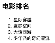 场景:在网页中表示一组有顺序之分的列表,如:排行榜