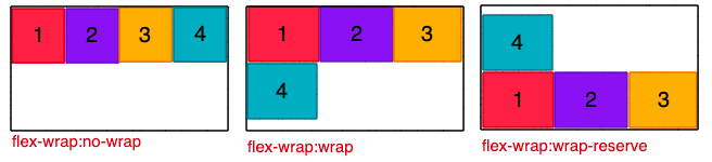 | wrap-reverse | 多行(对比 wrap,cross start 与 cross end 相反) 第一行在下方 |
