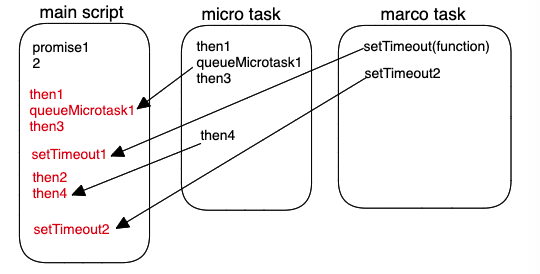 - other queue:Promise的then回调、queueMicrotask