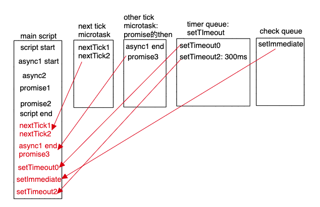 - next tick queue:process.nextTick