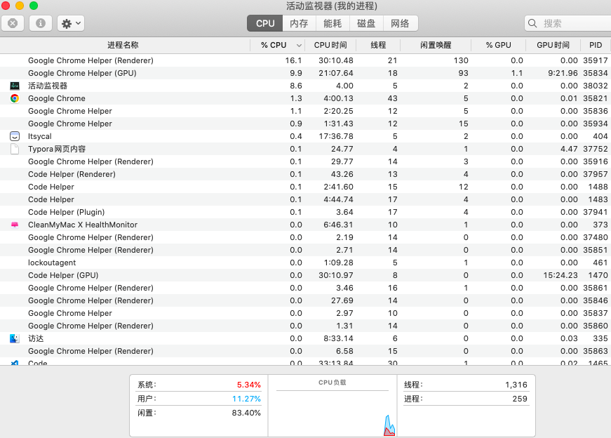 可以在Mac的活动监视器或者Windows的资源管理器中查看到很多进程
