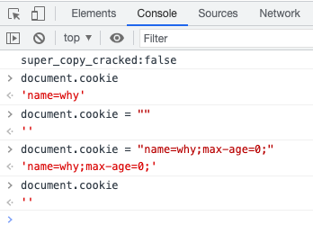 document.cookie = "age=18"设置cookie,同时设置过期时间(默认单位是秒钟)