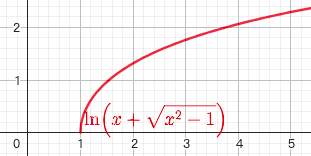 • $y= archx = \ln (x+\sqrt{x^2-1})$