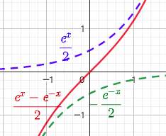 • $y = shx=\frac{e^x-e^{-x}}{2}$